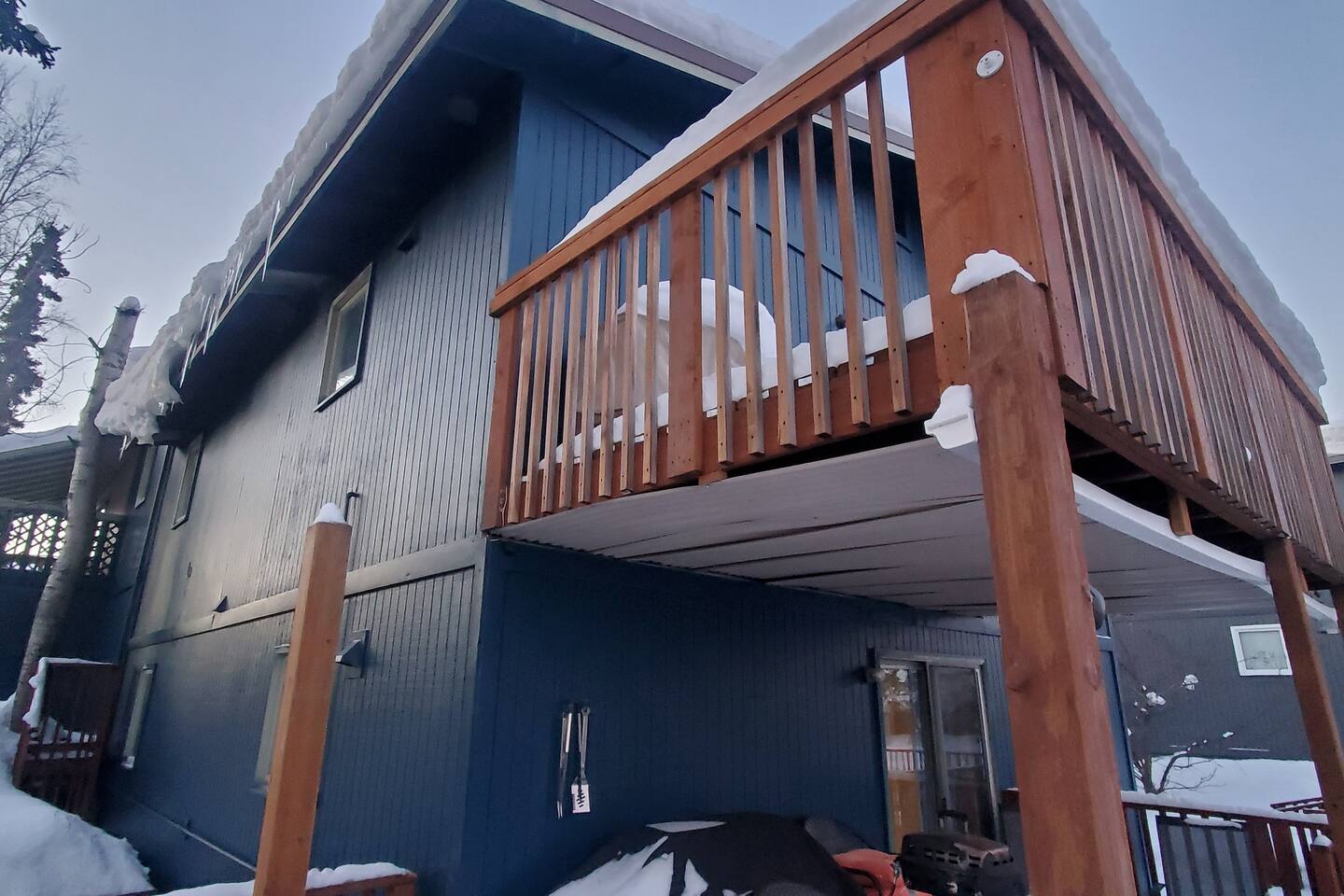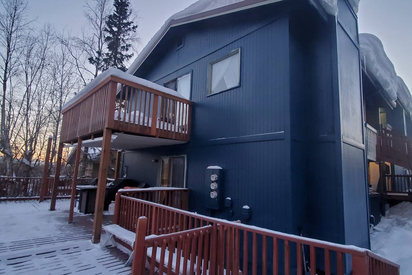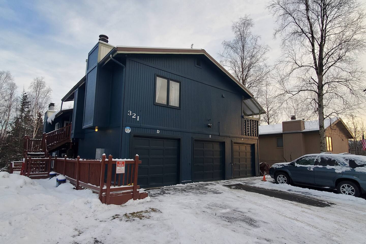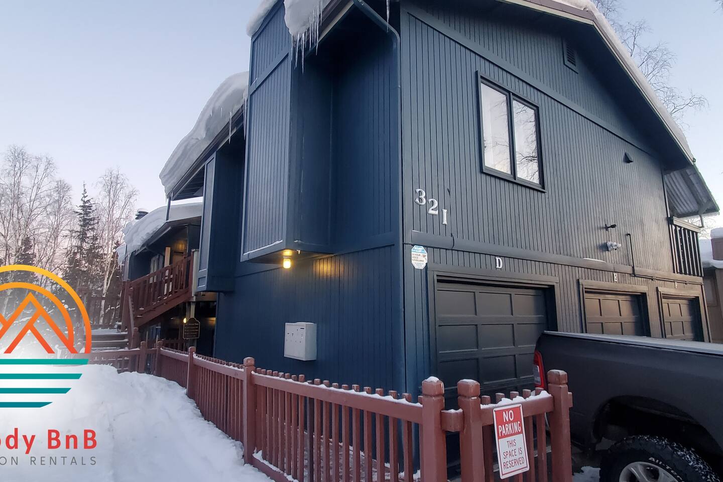 **Best Price Guaranteed** During winter months, the walkway to your unit (E) may be covered with snow or ice. Walk carefully over the steps to your front door. Please leave your boots on the shoe rack to your right where they can air out properly. In an effort to secure the premises, we've installed a Ring floodlight at the front of the property. The neighborhood is very safe, but this helps us keep an eye on the property :) Occasionally, you may see Mama Bear and her cubs. While they are adorable, please do not touch or go near them. And while they are so cute and look hungry, don't feed them or leave any food or trash in your car. Again, DO NOT LEAVE FOOD IN YOUR CAR OR THEY COULD BREAK IN. If you give Ms. Berenstain and her kids some time, they will migrate off the land :) Moose are equally dangerous. They may appear docile, but please do not pet them. It is best to take photos at a safe distance and/or through a window. We do have a functioning fireplace that you are welcome to use; don't forget to BYOF (bring your own firewood). Ask about our Infinit FX35 for rent too!