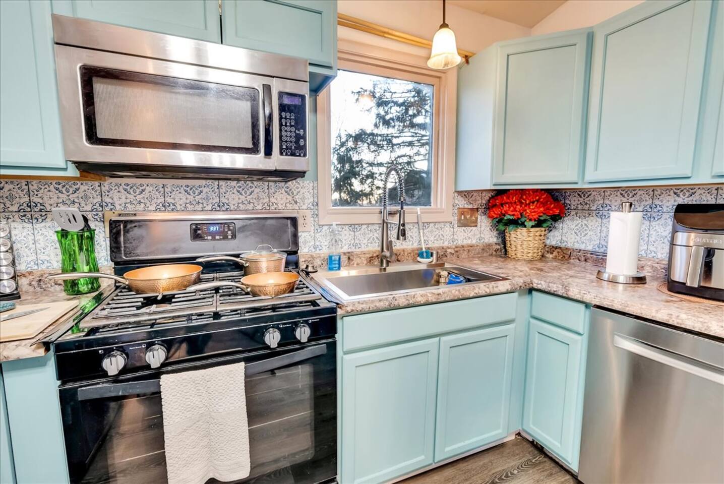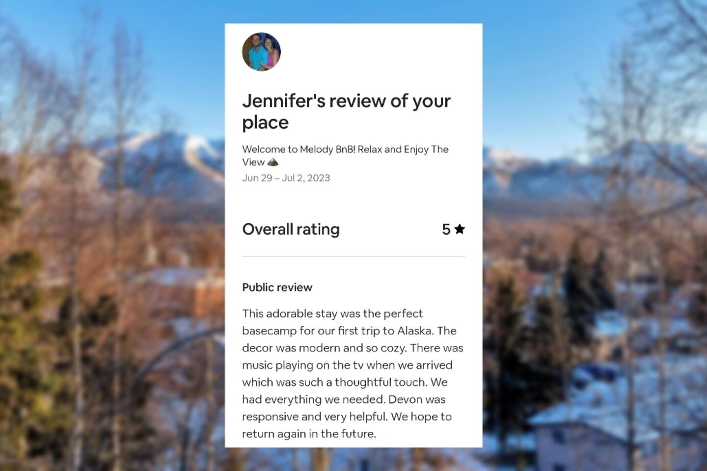 We take the sanitation and cleaning procedures of our home very seriously. All linens are laundered with every new stay, and all commonly-touched surfaces and objects are sanitized with every cleaning. This 2 bed/1 bath condo features 1 queen in bedroom (A) and 1 twin with twin trundle in bedroom (B) to comfortably sleep up to 4 guests. We also provide a pack 'n play for anyone traveling with small kiddos. :) Please request the trundle bed if needed. Working from home? We've got you covered with the FASTEST WIFI that GCI has to offer! Cozy up with dinner and a movie from your favorite streaming service via Roku TV (Disney+, Hulu, and ESPN+ Included!). Take in breathtaking views as you lounge around the propane fire pit from the second story of our triplex. Sure, amazing food is just around the corner (check my Guidebook!). But sometimes, we all need a nice home-cooked meal, right? That's why our kitchen is fully stocked with all the essential cookware you'll need to create a beautiful family dinner. We hope you'll enjoy the provided amenities and the open-airy bohemian vibe of this "Melody Boho" getaway. Perfect for Military Travel Lodging, Travel Nurse, Alaska Vacation, Student Housing!